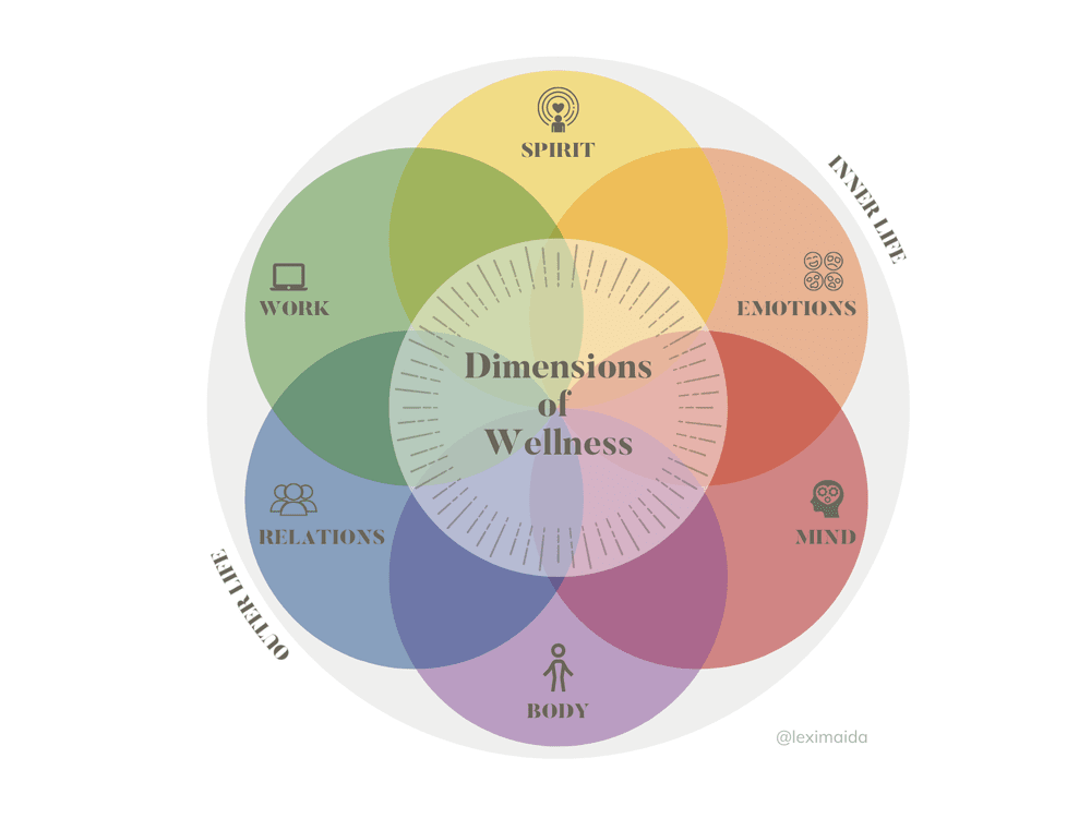 I believe wellness is a state of being. It is more than a number on the scale, likes on Facebook, reading good books, a great job, or a lovely home. Well-being is made up of six (per the National Wellness Institute) dimensions that overlap and are interdependent. Being aware of these dimensions is like having the tools to tend a garden. Without these tools, the garden would grow rampant in some areas and die in others. It certainly wouldn't self-maintain as a perfect garden. By caring for all of the dimensions of wellness, you'll stay happier and healthier.