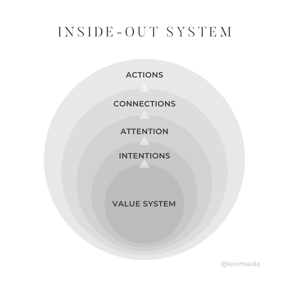 Our personal resources (value system > intentions > attention > connections > actions) are really ONLY valuable in the moment. They can’t be reused in the past or used ahead in the future. So, we need to be present in order to use them at all. Otherwise, we’re just wasting time and life.