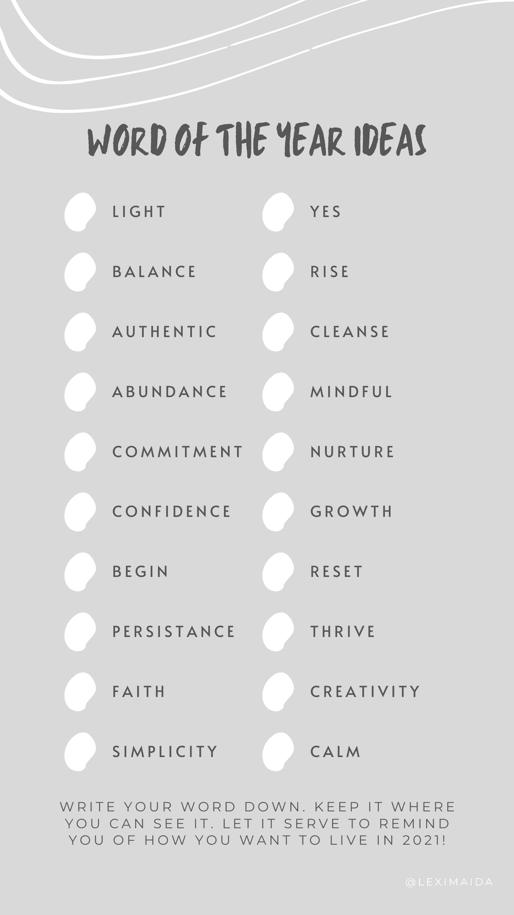 There are so many more things to be grateful for! I am going to cement my word into my daily life in 2021 by keeping a gratitude journal. I am a very digital person, so I will be using the Evernote app as a journal, but many people enjoy hand-written journals. Whatever the medium, the focus is to have a place to write and reflect. Imagine all that you will be able to look back at to be grateful for at the end of the year.