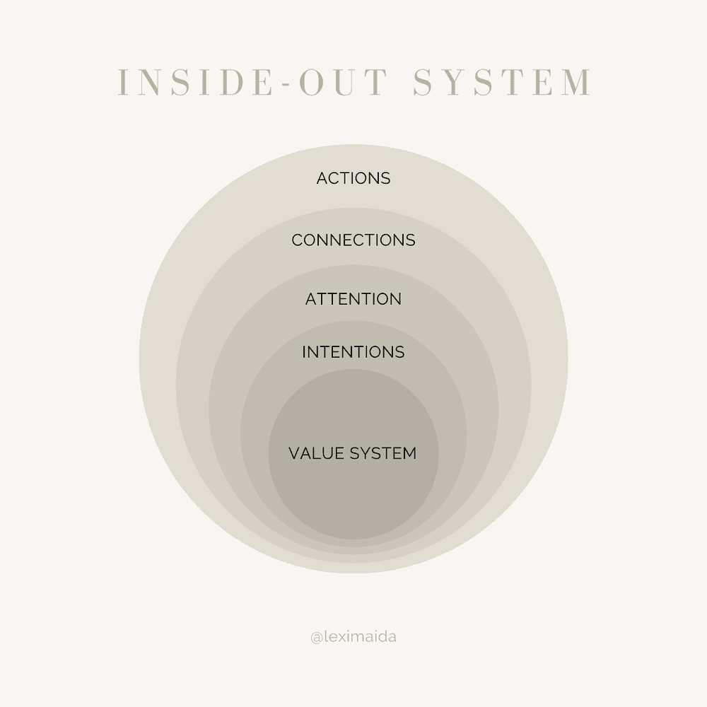 My solution in looking toward future chapters is that today always carries tomorrow. I have no business worrying about what may be. I anchor my aspirations, my desires, and my goals to my faith that my steps are guided. This connects back to the Inside-Out System where our value systems are the foundation for our intentions, attention, connections and actions. Do you see how being anchored to something will transform your life?
